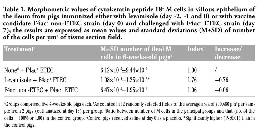 Key words: M cells, levamisole, E. coli vaccine, weaned pigs.